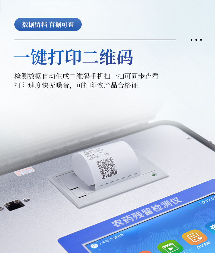 7、新一代高速热敏打印机,检测完成可自动打印或批量打印检测报告和二维码。