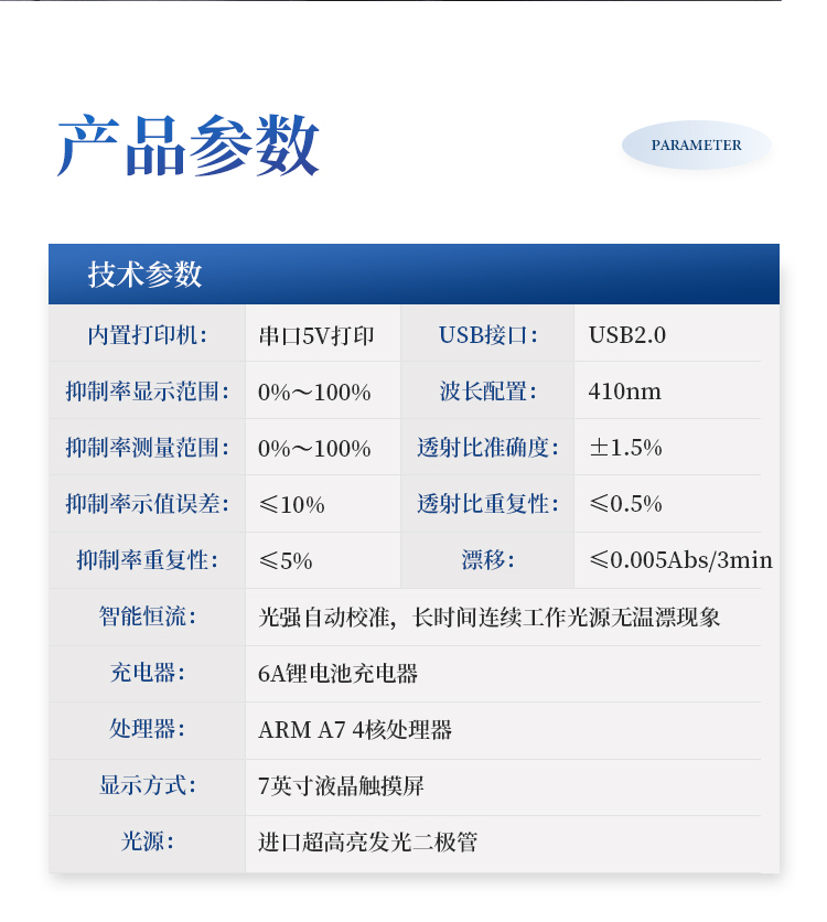 *抑制率测量范围:0%~100%;