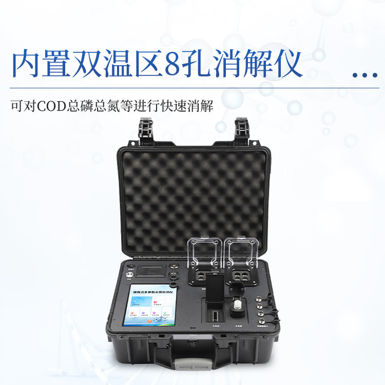 4、内置双温区8孔消解仪,左右温区独立控制,可对COD总磷总氮等进行快速消解。