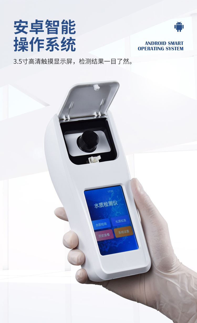 简要描述: 水质检测仪是一款适用于工业污水、水产养殖、河流监测、游泳场馆等领域的检测仪,配合快速显色检测试剂,可"快速、简单、准确、稳定"进行测量,拥有精美的外观造型,简单的操作界面,准确的检测系统,帮助用户获得精细的数据,可更准确、有效的分析水体状况。