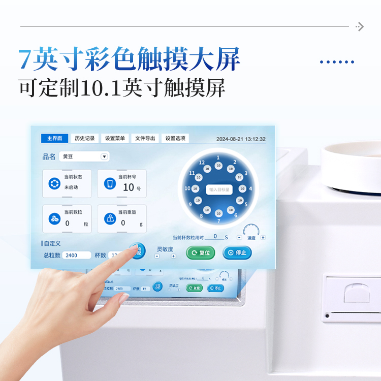 简要描述: 全自动分样数粒仪IN-SL30智能化程序设定:分样型自动数粒仪以数粒为核心,功能覆盖全面,程序设定后,从料仓到转盘全自动大批量分样数粒,减少人工时间。无需组装:智能化结构设计,无需组装,接线即可投入使用;超大触摸屏设计:7寸彩色触摸屏(可定制10.1寸触摸屏),增强用户人机交互体验。