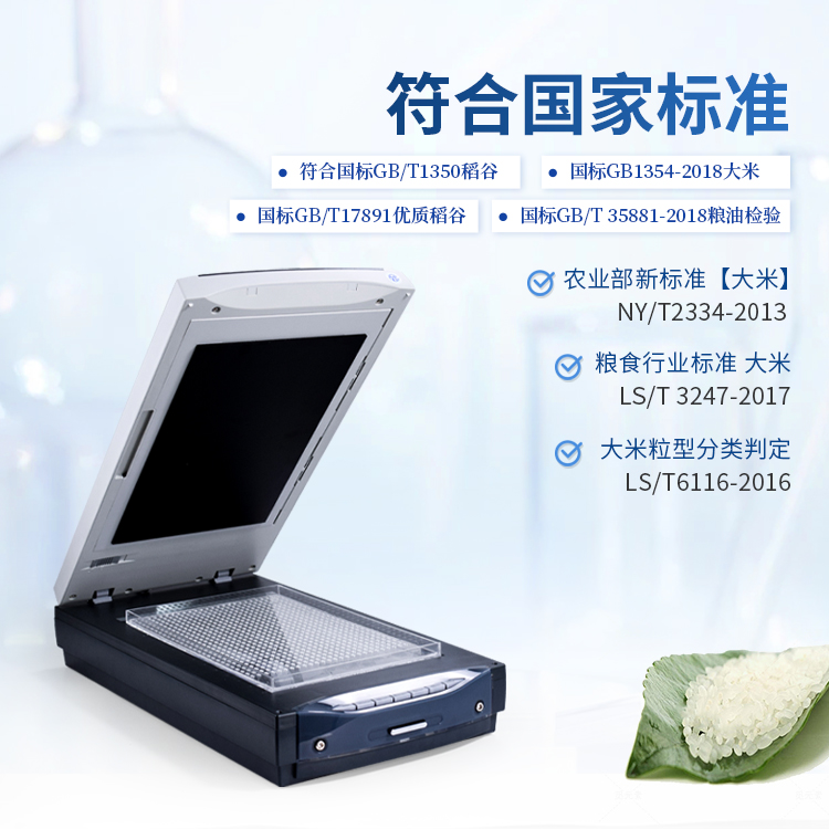 5、可大批量自动分析处理与输出结果。与国标GB/T1350稻谷、GB/T17891优质稻谷或GB1354-2018大米、农业部新标准【大米】NY/T2334-2013、大米粒型分类判定LS/T6116-2016、粮食行业标准 大米LS/T 3247—2017、GB/T 35881-2018粮油检验 稻谷黄粒米含量测定图像分析法等标准相对应,检测各项指标的质量比和粒数比。