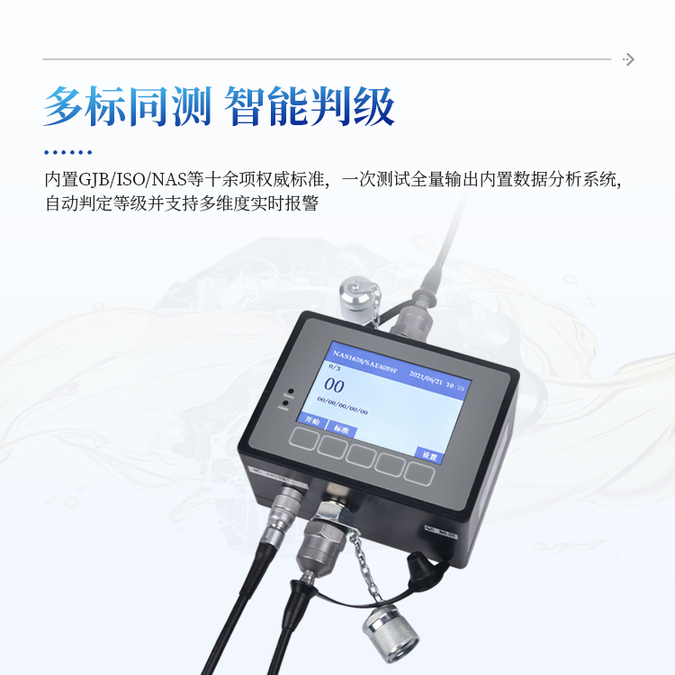 内置IS04406、NAS1638、SAE4059、GJB420A、GJB420B、 ГOCT17216、GB/T14039 颗粒污染度等级标准;