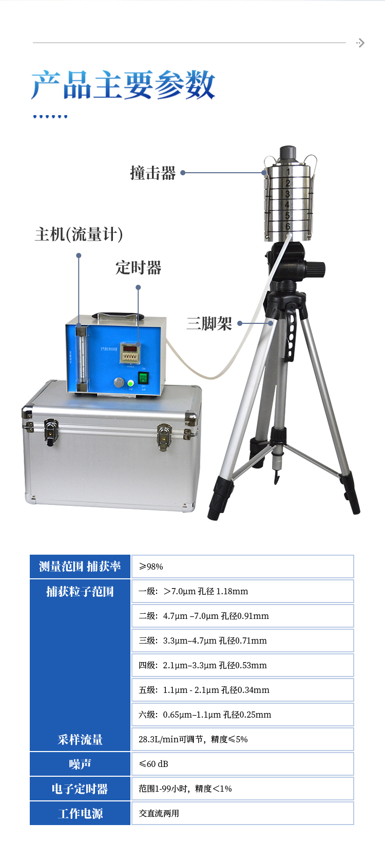 采样流量 28.3L/min可调节,精度≤5%;