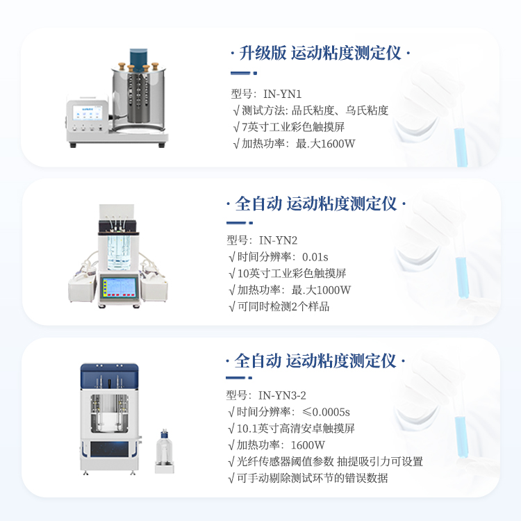 简要描述: 运动粘度测定仪IN-YN1是依据国家标准《GB265-88石油产品运动粘度测定法》设计制造的专用测试仪器,适用于测定液体石油产品的运动粘度。本仪器具有计时试样运动时间,自动计算运动粘度的最终结果。本方法适用于测定液体石油产品(指牛顿液体)的运动粘度,其单位为m2/s,通常在实际中使用为mm2/s。