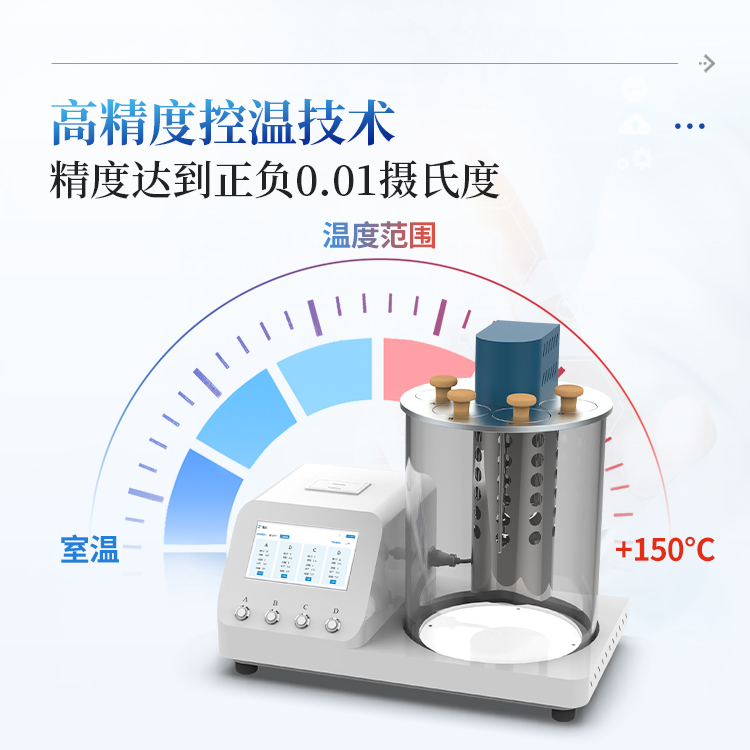 全自动运动粘度测定仪是按照GB/T265、ASTM D445的标准要求研制开发,用于测定液体、石油产品的运动粘度,结构设计精巧、美观、实用、操作舒适。一键快速恒温、油样上吸、粘度检测、粘度值计算、打印、粘度管清洗、烘干粘度管,不需要人工操作,仪器自动完成,一次可同时做2个样品的实验,提高工作效率;广泛应用于药典、石油、化工、科研、计量、商检、电力等部门。