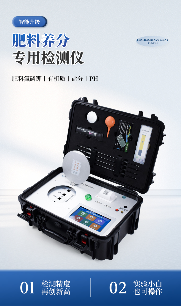 测肥料氮、磷、钾三项需50分钟左右,微量元素单项检测需20分钟左右。