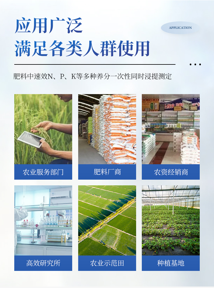 肥料中N、P、K等多种养分一次性同时浸提测定。