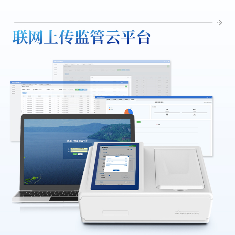 云平台:仪器带有监管平台,连接有线/无线网络,检测结果直接传输至环境安全监管平台。