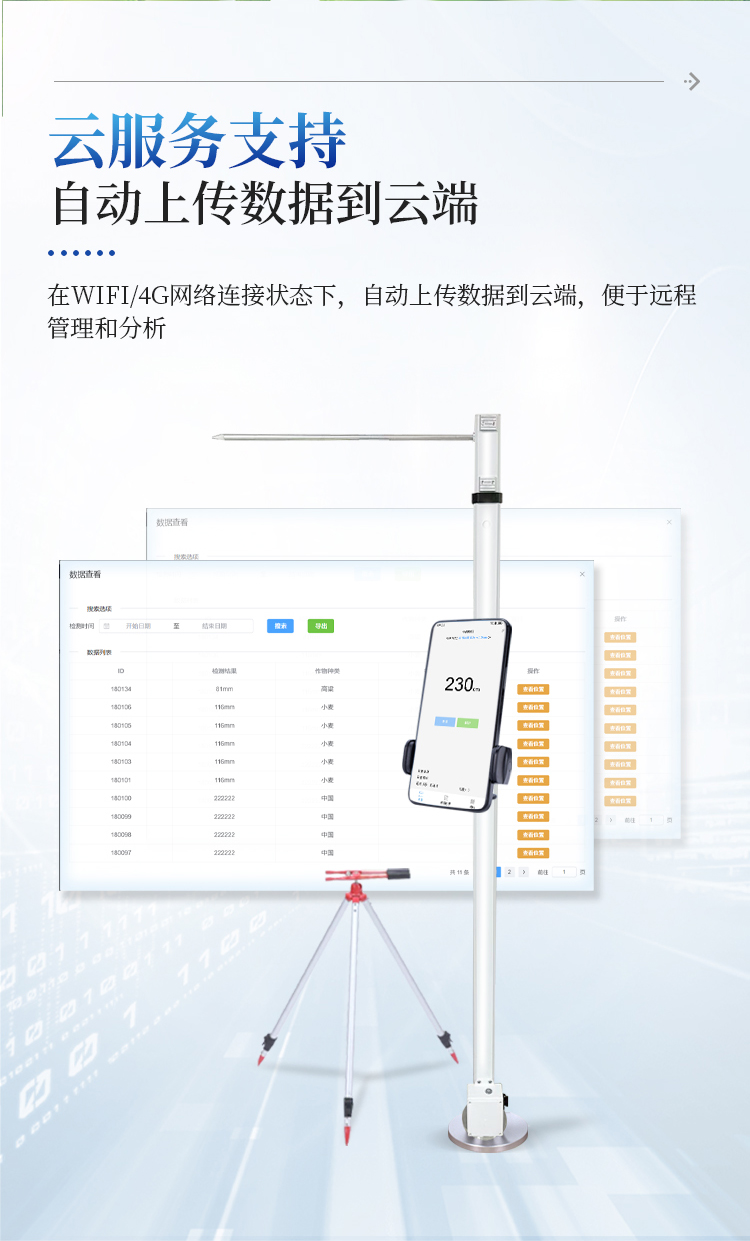 10、广泛应用性 - 最大测量高度可达3米,适用于大多数类型的农作物株高测量需求。