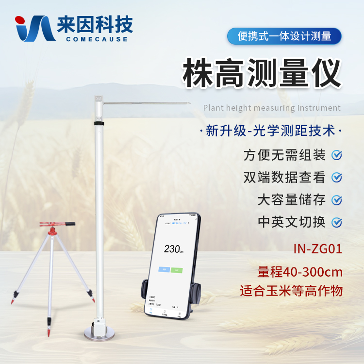 简要描述: 作物株高测量仪IN-ZG01是专为农业领域设计的一种便携式、快速响应的农作物高度测量工具。采用光学测距技术,并通过内置算法进行现场分析,能够实时获取作物的高度数据;采用内置的光学测距技术代替了传统的拍照式方法,光线系统为完全密闭式,无光线泄露,减少了环境因素影响,确保在任何条件下都能准确地进行即时测量。