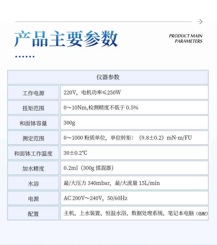 6、测定范围:0——1000 粉质单位,单位转矩:(9.8±0.2)mN·m/FU;