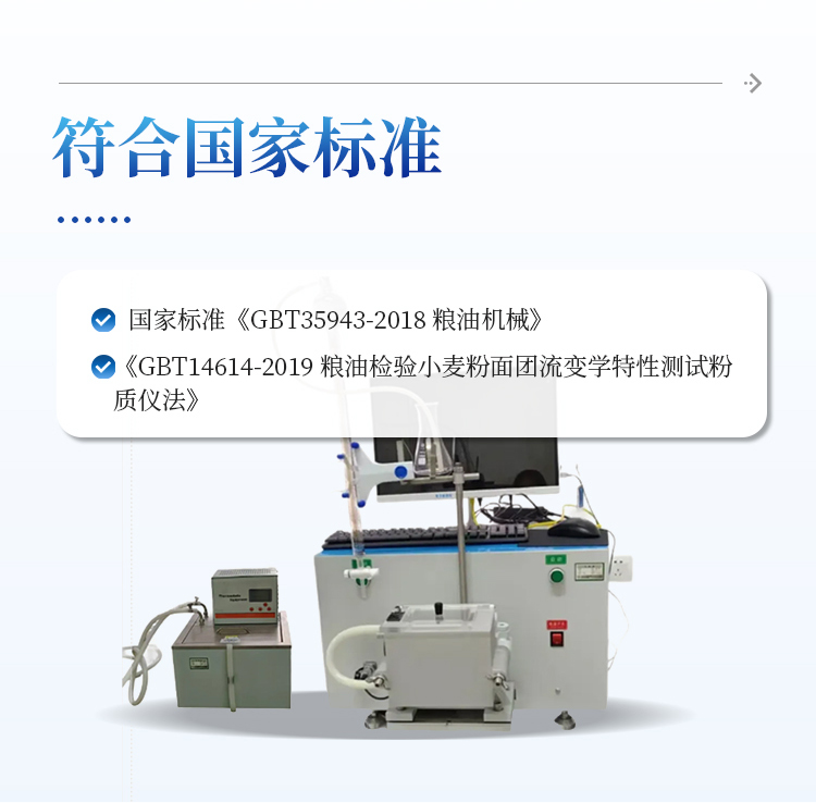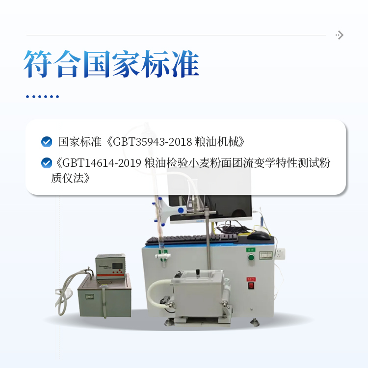 7、仪器指标与性能符合国家标准《GBT35943-2018 粮油机械》、《GBT14614-2019 粮油检验小麦粉面团流变学特性测试粉质仪法》并参与该标准的制定。
