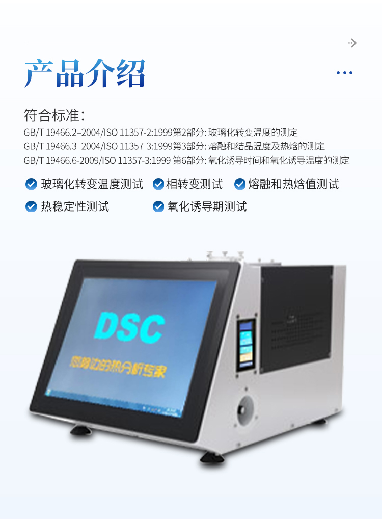该差示扫描量热仪为触摸屏式,主要针对塑料行业订制,可测各种塑料的熔融、块状、 颗粒、薄膜、管道、套管等熔点的测试。