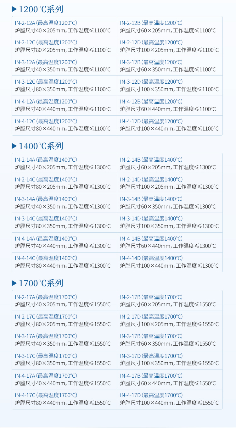 我司在高温电炉领域有着超过15年的经验、主营产品包括:箱式炉、气氛炉、管式炉、坩埚炉、升降炉、台车炉、牙科义齿炉、晶体生长炉、真空炉、石墨炉、排胶炉、等300°-3000°高温设备,并可提供各种非标定制,方案合理即可