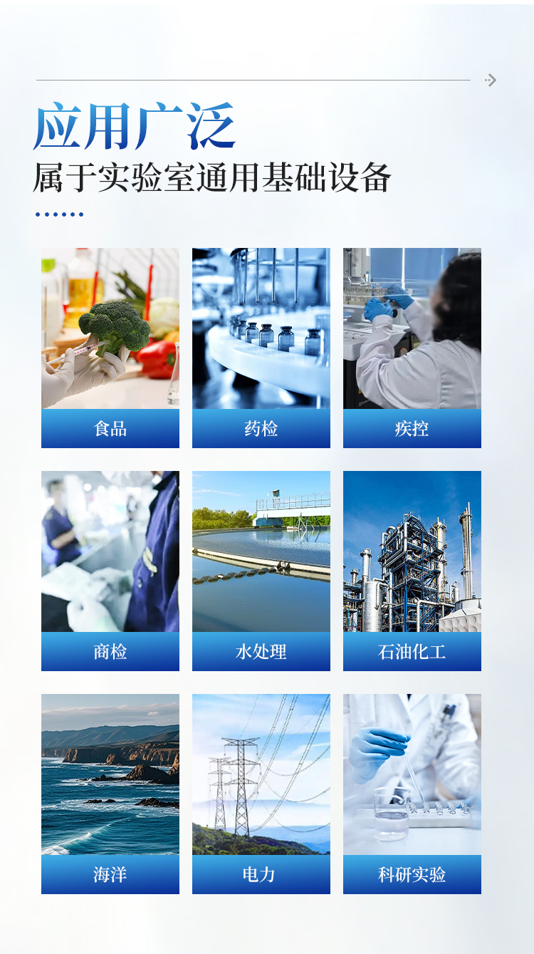 自动电位滴定仪属于实验室通用基础设备,使用非常广泛,可应用在食品、药检、疾控、商检、水处理、石油、化工、海洋、电力、环保、新能源、教学、科研等相关领域。