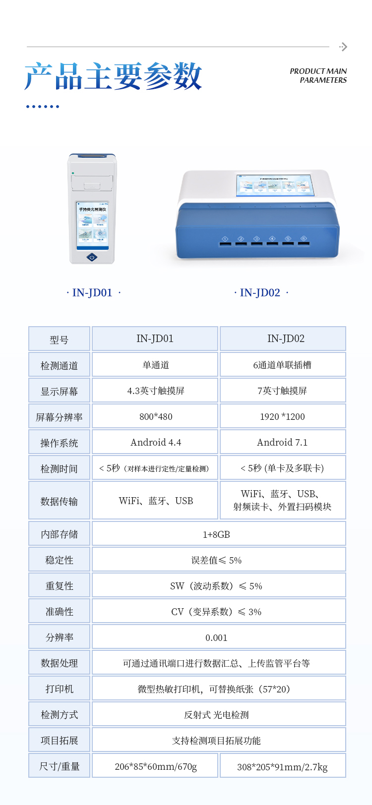 11、检测时间:< 5秒 (单卡及多联卡);可对样本进行胶体金定性/半定量检测。
