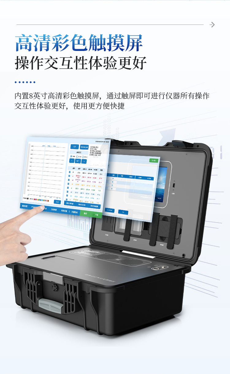 3.仪器内置8英寸高清彩色触摸屏,可触屏操作,可外置无线鼠标键盘操作,方便快捷;