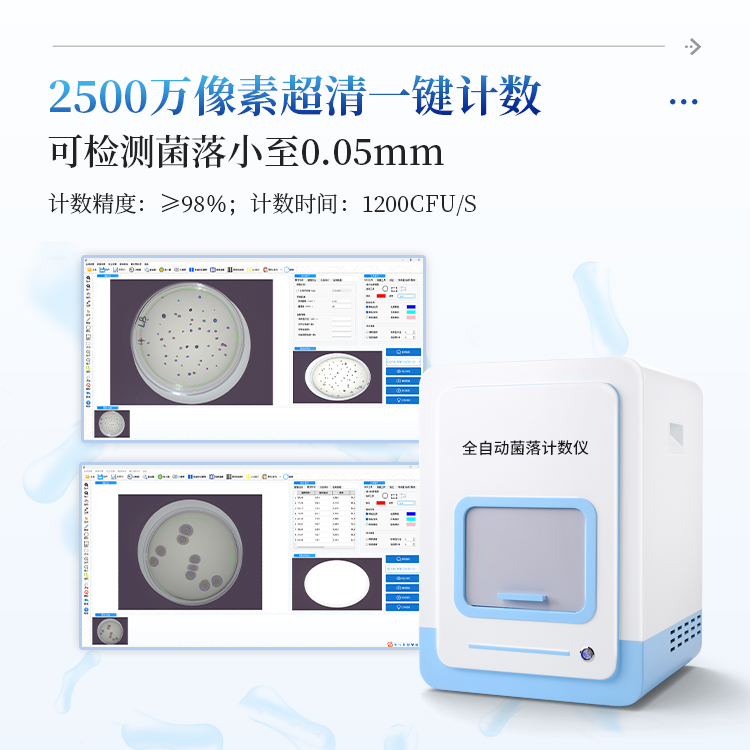 本产品是一款集图像采集、数据处理与统计于一体的自动菌落计数,广泛应用于食品、药品、化妆品、环境监测、医疗卫生、科研院校等领域的菌落计数。该仪器采用先进的数字图像处理技术,具备荧光菌识别和杀菌功能,可实现对培养皿中菌落的快速、准确、全自动计数,显著提升实验效率,降低人工误差。