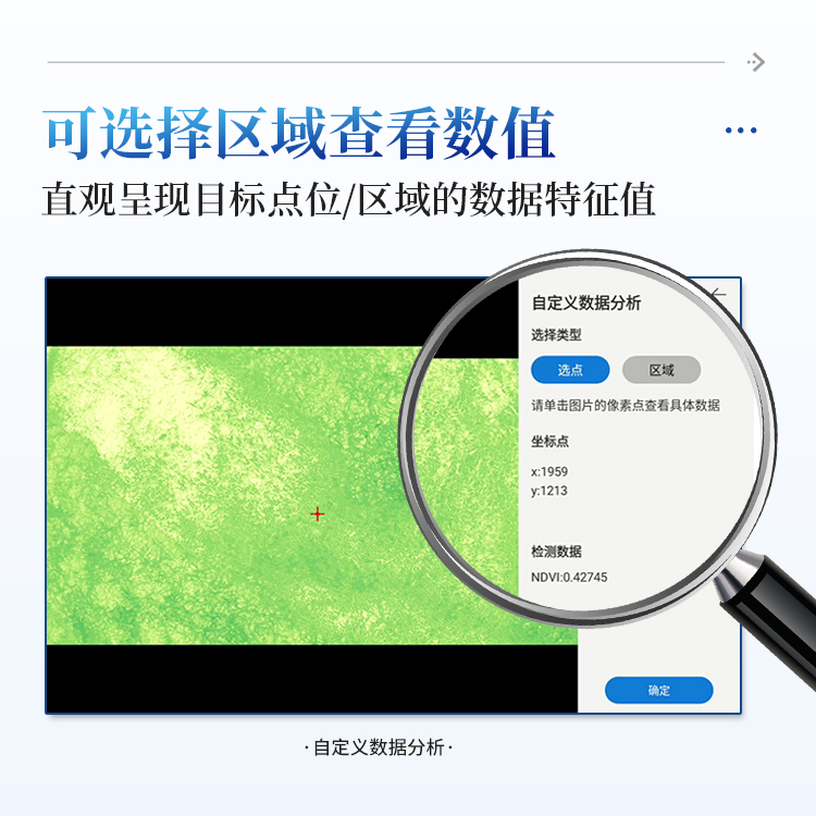 该仪器主要用于草地、农田、湿地、林地等野外数据采样调查,使用方便快捷,精准获取高分辨率的RGB影像以及红光光谱、近红外光谱影像数据,自动计算植被覆盖度FVC,NDVI,LAI冠层等植被指数