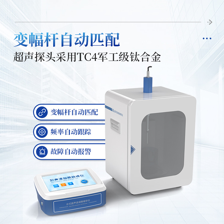 利用超声波在液体中的分散效应,使液体产生空化的作用,从而使液体中的固体颗粒或细胞组织破碎.超声波细胞粉碎机由超声波发生器和换能器二大部分组成。超声波发生器将市电转变成20-25KHz交变电能供给换能器。锆钛酸钡压电振子是换能器的心脏,它随交变电压以20-25KHz频率作伸缩弹性形变,换能器随之作纵向机械振动。振动波通过浸入在生物溶液中的钛合金变幅杆产生空化效应,激发介质里的生物微粒剧烈振动。