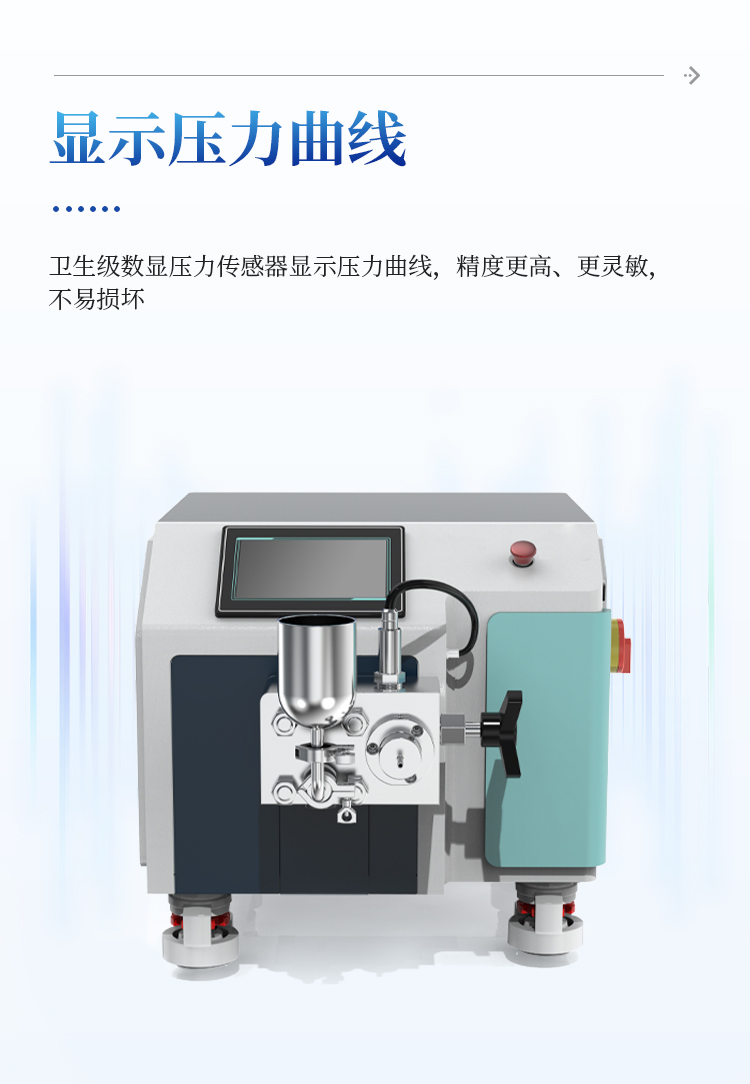 ▲1.7、压力显示:选用≥7寸触摸屏和卫生级数显压力传感器显示压力曲线,精度更高、更灵敏,不易损坏。