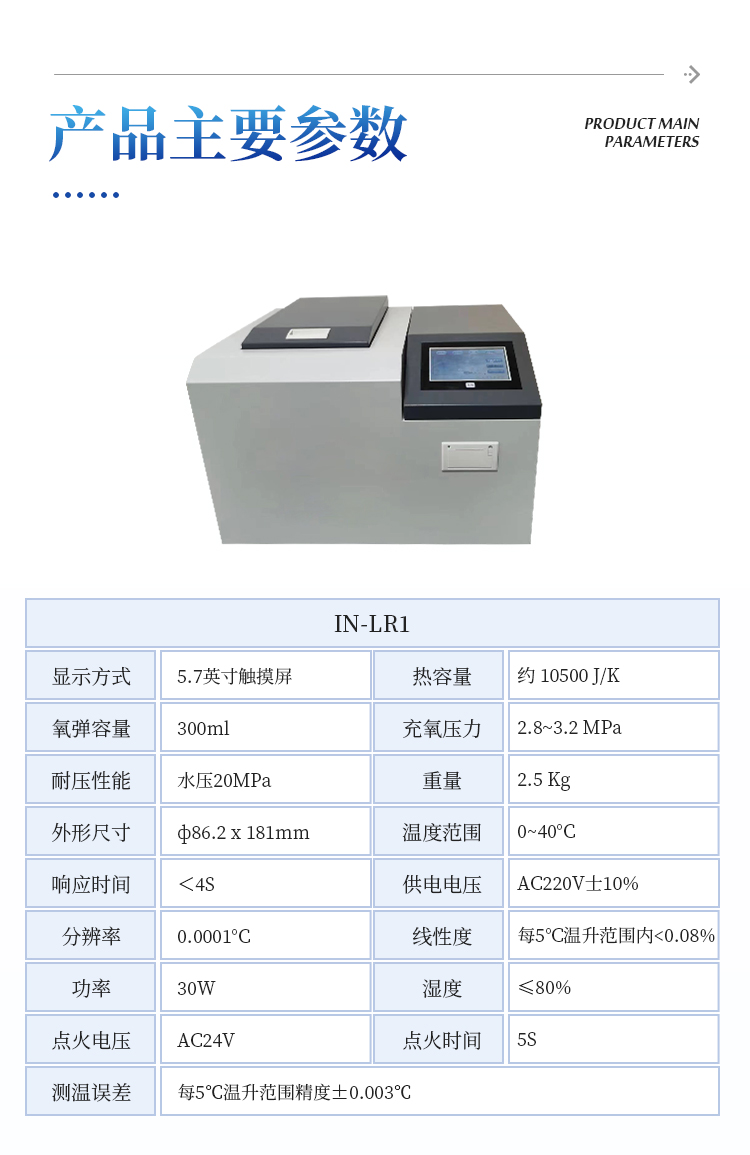 适用于生产、研究和使用可燃物质的企业、大专院校、科研部门及军工单位用来测定 煤炭、焦炭、化工、粮食、木材、饲料等可燃物质的发热量和火药的爆热值。