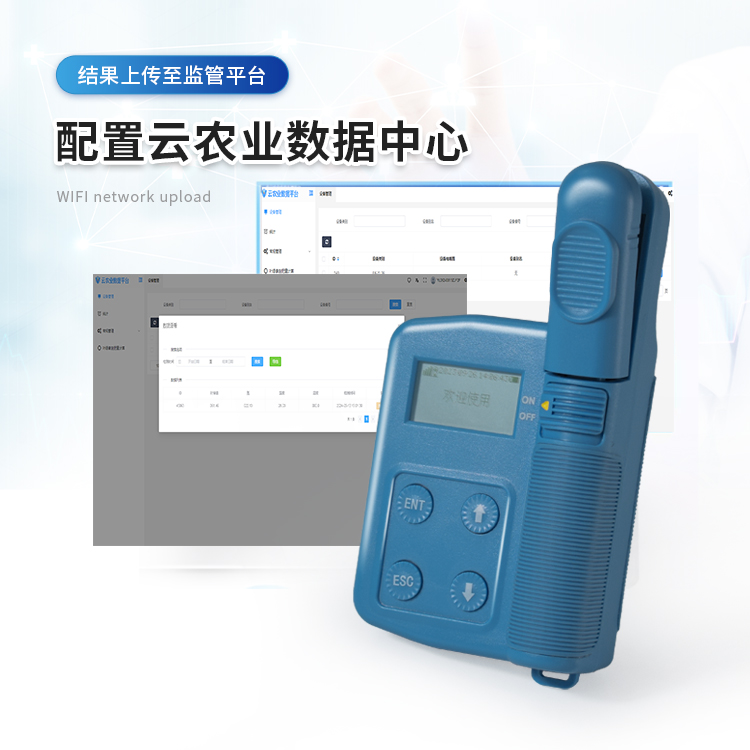 8.仪器内置4G无线传输模块(赠送两年数据流量),支持野外环境实时上传数据,检测结果可直接传至专属云农业数据中心,分配企业专属云农业数据中心账户,该账户中心可查看不同检测人员的上传数据。