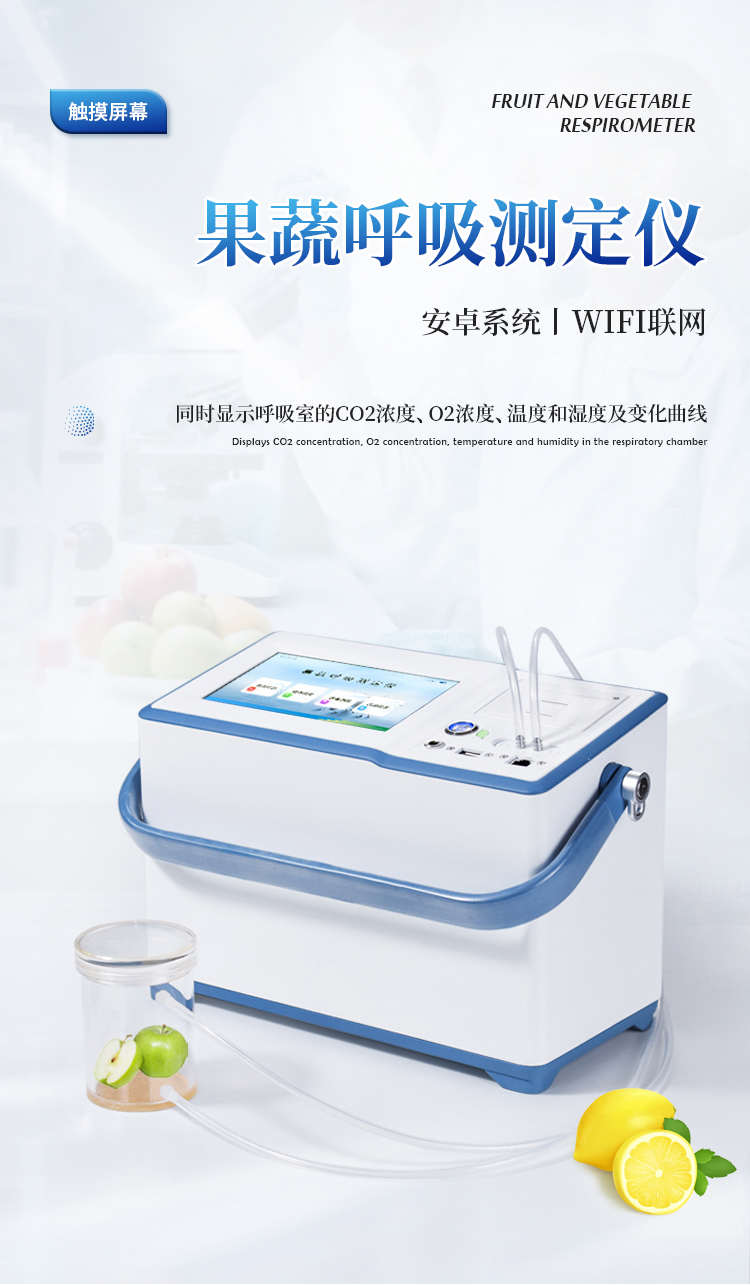 果蔬呼吸仪采用双波长红外二氧化碳分析器,7寸安卓显示器,专门用于常温、冷藏库、气调库、超市冷柜等储藏条件下的果品和蔬菜呼吸强度的测定和分析研究。