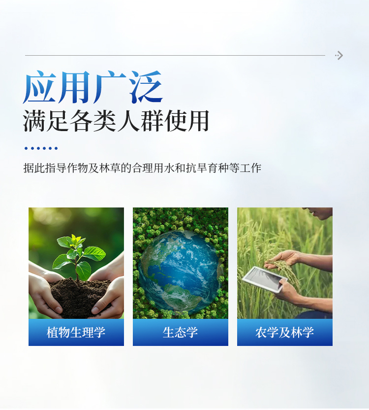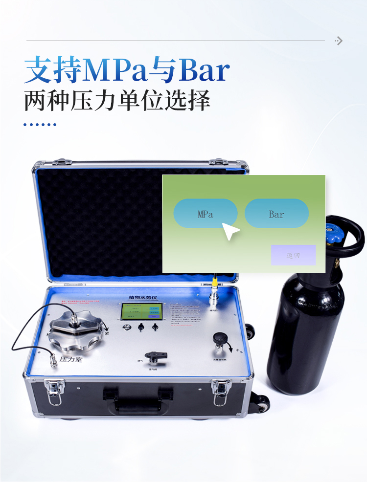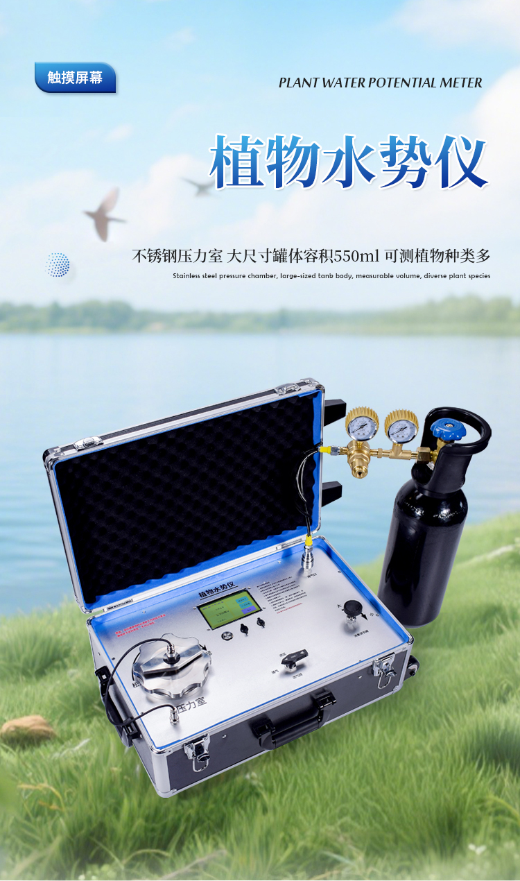 植物水势测定仪,是用于测定植物水分状况和它的组成成分及压去木质部位导管汁液提供成分分析用的一种分析仪器。可以利用此仪器研究植物的水分关系和植物与环境的关系。植物水势测定仪适用于植物生理学、生态学、农学、林学及牧草等的研究。据此指导作物及林草的合理用水和抗旱育种等工作,是从事农林教学和科研工作的重要仪器。该仪器操作简便,检测快速,同时适用于室内和室外及野外测量。