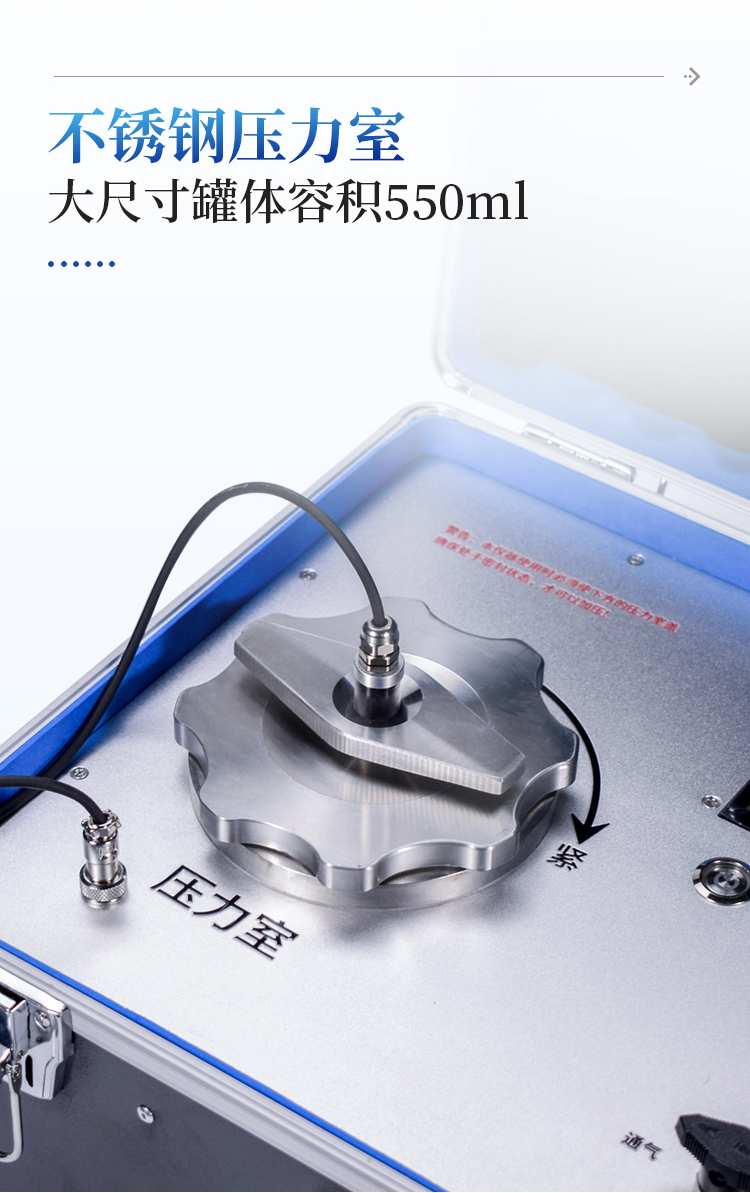 植物在土壤——植物——大气的连续系统中,植物的根茎不断从土壤中吸收水分,而叶片又不断地向周围环境蒸发散失掉水分,在这种水势的梯度系统中,植物的根——茎——叶之间也一定存在着水势梯度关系,使木质导管中的细小水柱受空气低水势的负压影响,形成水分向上运输的拉力。当植物枝条或叶片被切下时,导管中这种被拉紧的水柱断裂,水柱会从切口处向上端内部收缩。将切下的材料装入仪器的压力室内(操作程序见下章节),使切口的一端伸出室外密封起来,然后加压,使枝条或叶片内的张力重新平衡,把小水柱推回恰好到切口表面为止,此时水滴检测探头自动检测水滴的渗出,自动锁存测量数据。仪器显示的压力值就是当前植物的水势值。