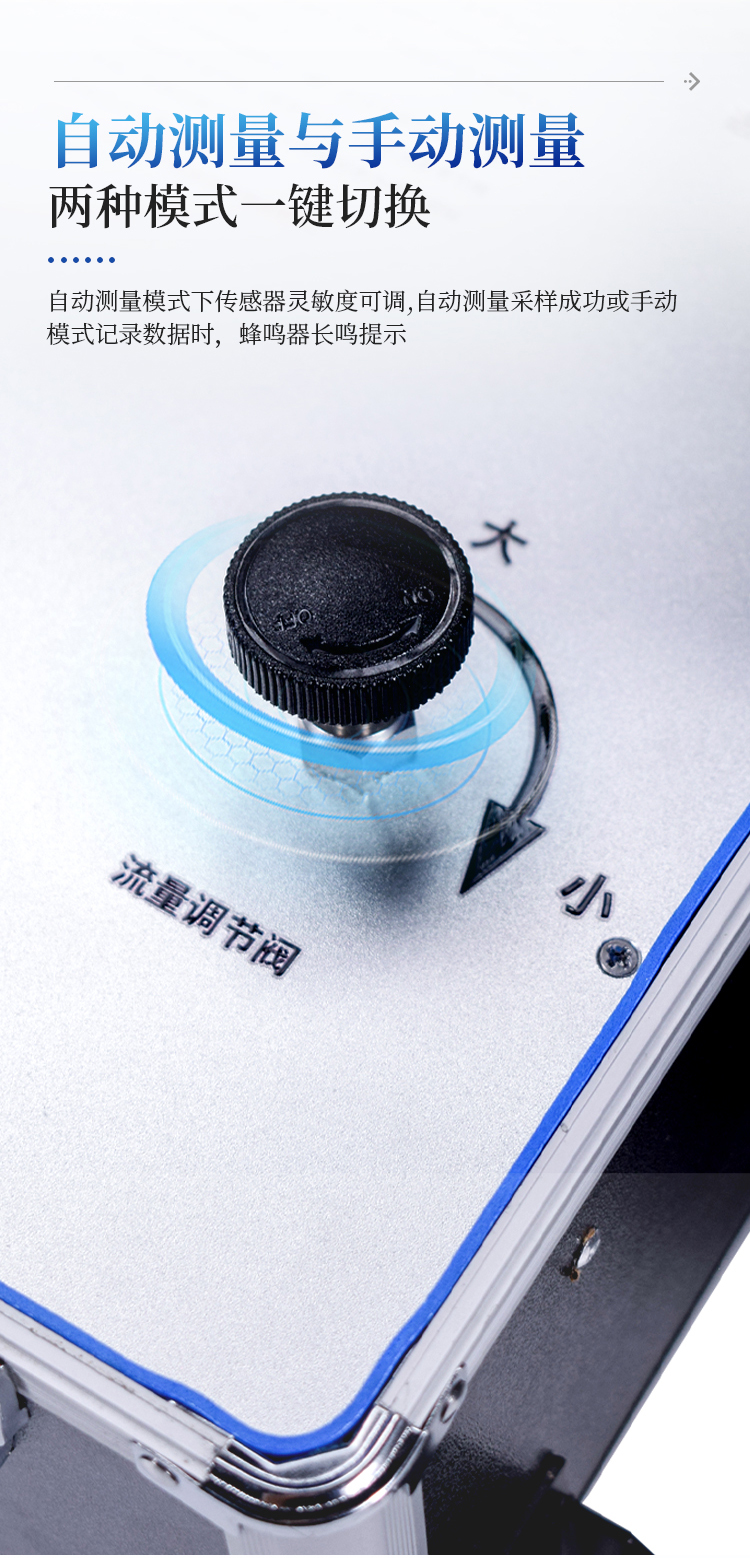 2. 支持自动测量与手动测量两种模式,一键切换,自动测量模式下传感器灵敏度可调。