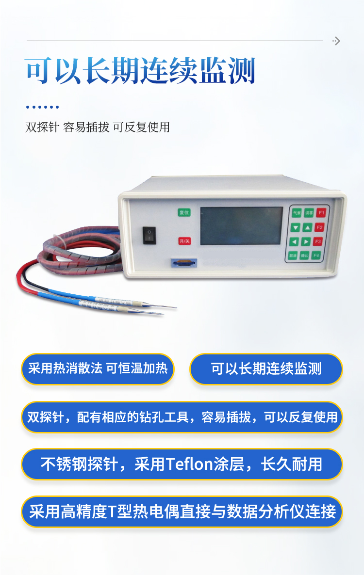 双探针,配有相应的钻孔工具,容易插拔,可以反复使用