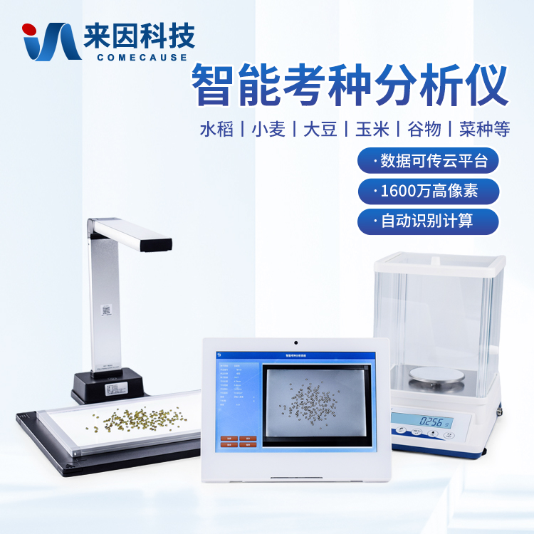 智能考种系统可以测量各种表面光滑的籽粒的数量、千/百粒重与平均粒型(包括长、宽、长宽比、周长、面积),利用图像ORC 识别技术、图像定位、空间转换等技术实现快速识别种子数量及作物性状指标。