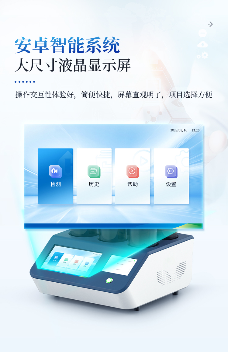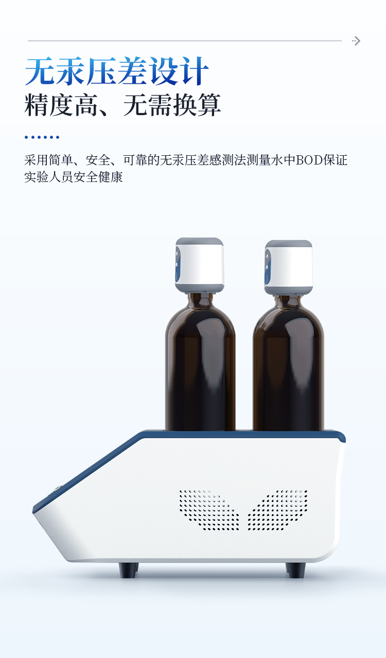 简要描述: BOD快速测定仪采用国际先进的无汞压差法,无汞污染,且数据准确可靠;6个测试终端,独立控制,在检测过程中可随时加入新的测量组;Android智能系统,操作交互性体验更好,更加简便快捷;7英寸液晶触摸屏,人性化设计的人机交互,所有数值对比显示,简单直观;无需人工换算,仪器可直接显示BOD浓度值,多组数据可在统一界面显示。