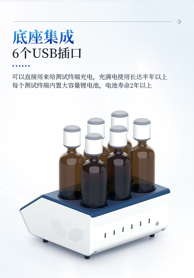 9、底座集成了6个USB插口,可以直接用来给测试终端充电,充满电使用长达半年以上。