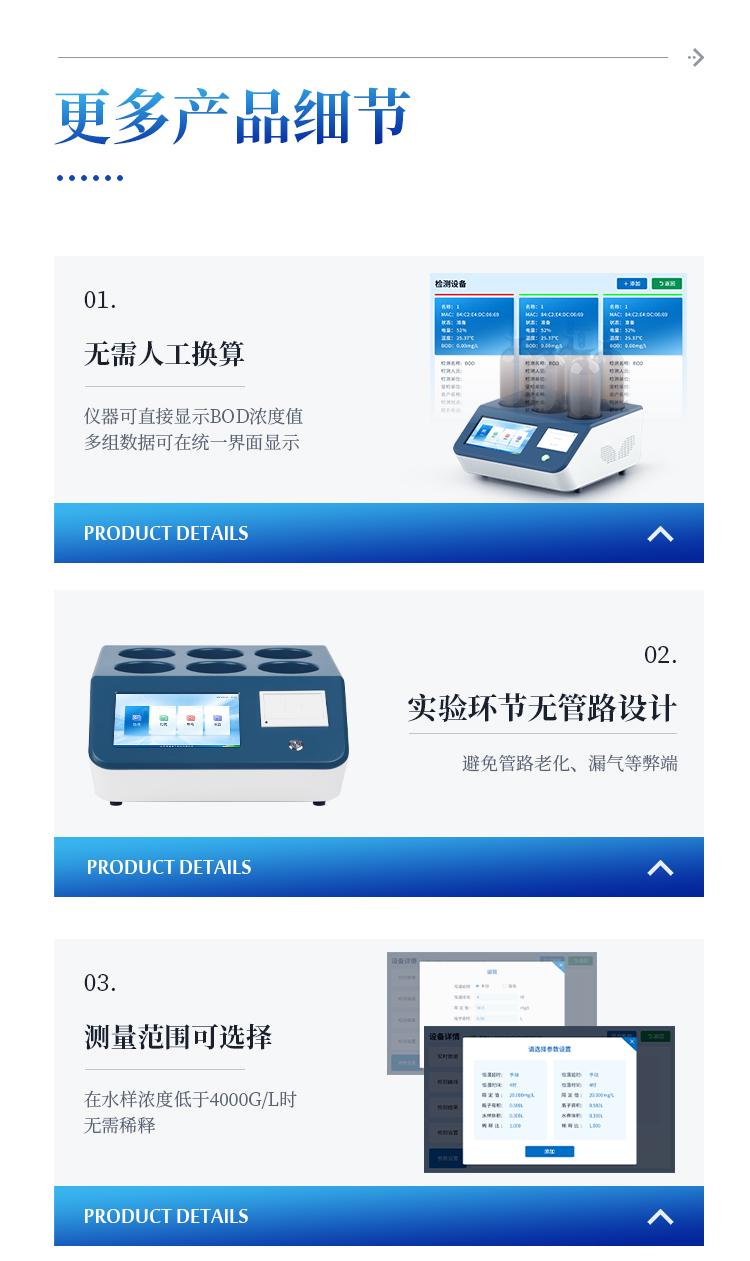 5、无需人工换算,仪器可直接显示BOD浓度值,多组数据可在统一界面显示;