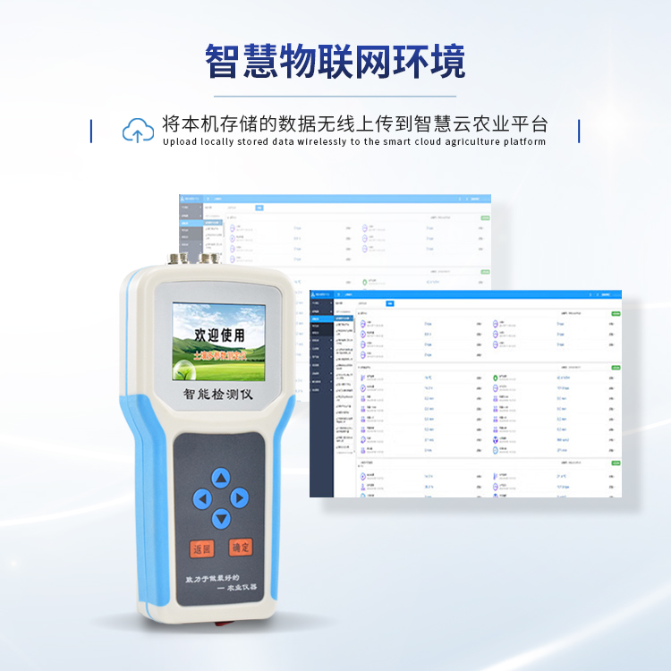 6、仪器可加配4G联网功和能数据管理平台,将本机存储的被测点环境因子测量历史数据无线上传到智慧云农业平台,方便用户进行数据管理和长期分析。