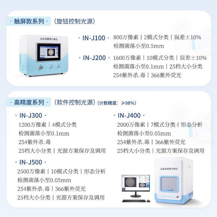 该系列全自动菌落计数仪配备了灵活的上、下双光源系统,用户可以根据不同培养皿的类型、菌落特性以及背景情况,用软件自由调节光源以获得最佳的成像效果。
