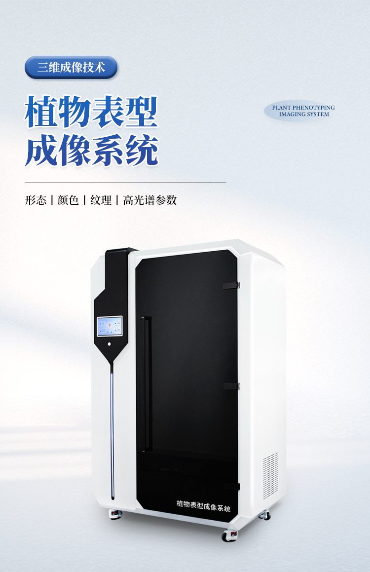 植物表型成像分析系统是主要用于对植物表型进行测量与分析的设备。系统分别在顶部、侧上方以及侧下方设置了可见光成像单元,根据底部旋转台设备的转动进而获取植物全方位的表型信息。系统使用了以人工智能为基础的三维成像技术,以多视角结合的方式动态生成植物的三维模型,并且可以根据模型计算植物的株宽、株高、骨架、ASM、SSIM等形态、颜色、纹理参数。适用于分析禾本科、茄科、十字花科、豆科等植物,主要用于植物生理学、生态学、环境科学、植物保护等领域。